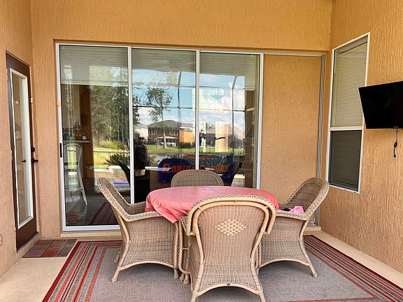 $5000 closing costs help for the buyer. Lots of palm trees on this homesite with double glass front door and triple sliders that recess into the exterior wall with a beautiful view of the golf course and pond. This home also features a screened in pool with waterfall and fountain. The exterior lot is much wider than most in the subdivision and has a 2 car garage.