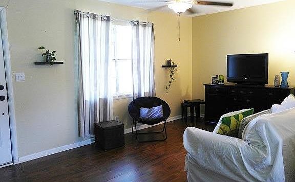 Lovely 3 BR, 2 BA, 2 car carport frame home on a massive corner lot with a wood-privacy fenced backyard; Open concept kitchen and dining; Hardwood flooring; Carpet in the bedrooms with hardwood flooring underneath; Updated kitchen features a drop-in range, new countertops, double sink with window overlooking backyard, white cabinets; Updated bathrooms with ceramic tile flooring; Hall bath has a tub-shower combination, vanity with sink and toilet; Master bath has a step-in shower, vanity with sink and toilet; Metal storage building with electricity; New tankless hot water heater; Great neighborhood near Wal-Mart, churches and schools; Must see!