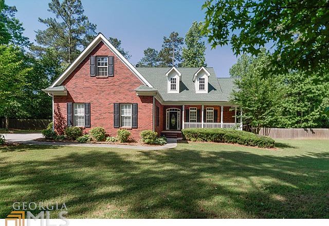 Awesome home with rocking chair front porch nestled on a beautiful wooded lot with private fenced back yard. This split bedroom plan has new interior paint..Beautiful master suite with sitting area, double trey ceiling and spacious master bath with double vanity, jetted garden tub, separate shower and walk-in closet. Open plan to include vaulted family room with stacked stone fireplace, kitchen with breakfast area and separate dining room. Large deck overlooking spacious back yard. Convenient to Peachtree City and the Avenue. This home is a MUST SEE!!