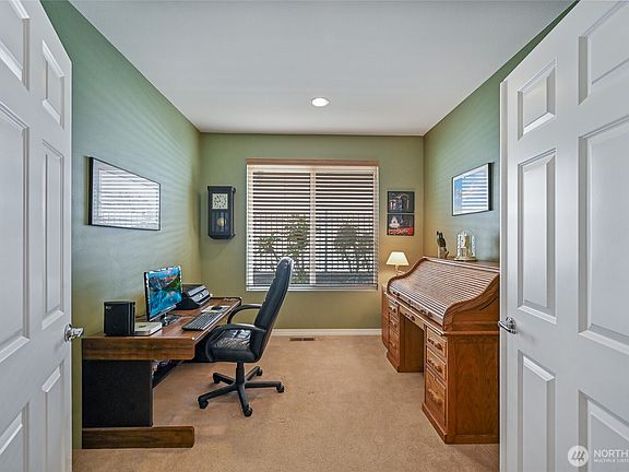 This desirable Bainbridge plan home offers an open great room for everyday living and a dining room that seats 12. Kitchen with loads of cabinets, newer French door fridge, microwave & garbage disposal. Handy butler’s station & pantry. From the breakfast nook, step out to the new, oversized, composite deck with a sunny SW exposure for relaxing and entertaining. Generous primary and en-suite w/a low barrier shower, dual sink vanity & walk-in closet. 2nd bdrm w/an adjacent full bath. Large office with French doors. Beautiful hardwoods. Newer H2O tank. Exterior paint ~ 4 yrs ago. Trilogy is a thriving active 55+ adult community with activities at the Cascade Club + pickleball, tennis, indoor pool, miles of trails and more. Pre-inspected.