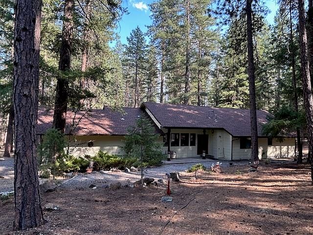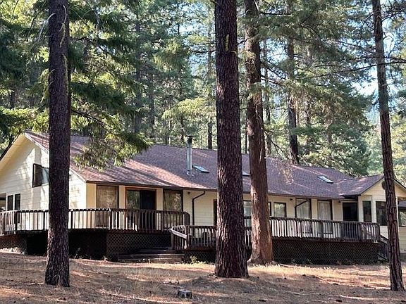 80 Acres with 2500 sq ft custom home situated amongst scattered pines - amazing seclusion and privacy! Home features vaulted knotty pine ceilings, large windows and open design. Tile flooring at entry, tile in bathrooms and kitchen; primary bedroom is very large; en-suite bathroom with double vanities; jacuzzi style tub; separate shower and toilet area; large walk in closet and lovely views. Secondary bedroom has built in murphy bed and opens to living area with adjacent bathroom and expansive cabinetry and counters. Arboretum connects living area to den/music room which could be 3rd bedroom. Kitchen is a dream with expansive tile countertops and cabinetry; lengthy breakfast bar and island for serving. Appliances include double ovens, 5 burner cook top, refrigerator and dishwasher. Adjoining generous utility room has large walk-in pantry, deep sink and extra 1/2 bath. Well is substantial; pumps about 60 gpm; 2500 gallon storage gravity feeds home and shop. Property slopes up to USFS land above which provides endless walking and riding trails. Beautiful shops - 20x44 plus 12x20 loft; garage/shop 25x60, finished and insulated; RV parking and hookup near carport area. See this!