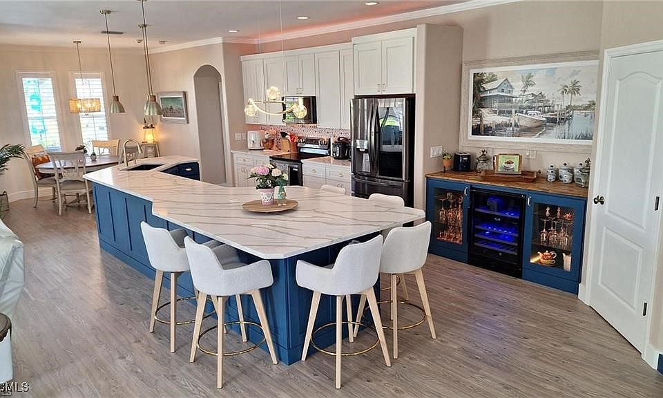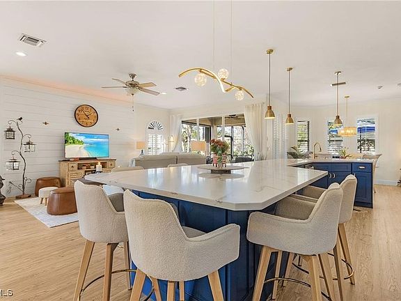 NEW LISTING! This is an ABSOLUTELY STUNNING GATED COMMUNITY HOME WITH JUST 171 HOMES. THE ENTIRE INTERIOR OF THIS HOME HAS BEEN COMPLETELY UPDATED! NEW FRONT ENTRY SCREENED ENCLOSURE! NEW HURRICANE SAFE ENTRY DOOR, NEW LUXURY VINYL FLOORING THROUGHOUT THE HOME, NEW OPEN KITCHEN WITH A VERY LARGE QUARTZ COUNTERTOP ISLAND WITH 2 WIRELESS POP-UP OUTLETS! BRAND-NEW HIGH-END QUALITY STAINLESS STEEL APPLIANCES! CUSTOM MADE REAL WOOD CABINETRY! LARGE WALK IN PANTRY! TOTALLY REMADE MASTER BATHROOM WITH A LARGE FRAMELESS LIGHTED MIRROR! LIVING AREA WITH ELECTRIC FIREPLACE! NEW HIGH STANDARD WASHER & DRYER! ATTIC NEWLY INSULATED, POWER SHUTTER ON LANAI. LAST BUT NOT LEAST, THE A/C AND WATER HEATER ARE ALSO BRAND NEW. THE ENTIRE HOME INTERIOR INCLUDING THE GARAGE HAS BEEN REPAINTED AND A NEW GARAGE DOOR INSTALLED IN 2023! When you enter this cozy home which has NOT BEEN FLOODED, you immediately feel the great ambience. You see A LARGE GREAT ROOM with HIGH CEILINGS in front of you looking straight out to the lanai and pond! When walking through the entry foyer, a large Den is to your left, and to your right is the open kitchen with perfectly well integrated LED LIGHTING. This home is PERFECTION! Directly next to the kitchen is an eye-catching Beverage Center with a UNIQUE and EXCEPTIONAL COUNTERTOP, Super Nice! A SEPARATE DINING AREA is comfortably located just off the kitchen. The large Master Bedroom has a nice sitting area and a NEW STORM-RATED LANAI ENTRY DOOR! The Master Bath with its oval self-standing tub, dual sinks and Frameless Lighted Mirror with adjustable light settings is just WOW!! The two Guest bedrooms are spacious, and the guest bath has NEW CABINETRY and a Lighted Mirror with adjustable settings as well! !The PLANTATION SHUTTERS in the Den, the Living room, Dining area and the Master Bedroom complete the layout of this home harmoniously. Colonial Shore's has a Community Pool and Clubhouse equipped with fitness facilities despite a low HOA! The walk to the pool and clubhouse is about 2 minutes! Located in the beautiful McGregor/Iona area makes for a short drive to Fort Myers Beach, Sanibel, Captiva Islands and the airport! MOST OF THE BRAND-NEW HIGH-END FURNITURE COULD BE NEGOTIATED SEPARATELY!