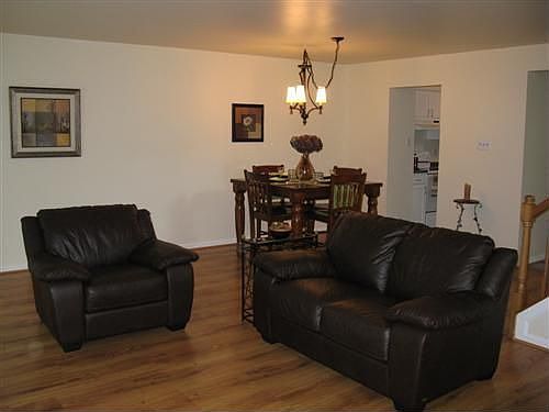 3 bedroom, 2 full and 2 half baths, 3 story end unit townhouse. Wood floors throughout. Large foyer with coat closet and half bath. Main floor open concept living/dining room with fireplace. Kitchen with plentiful storage. Back yard with deck backing up to golf course. Finished basement with half bath and large utility room for storage with full washer and dryer. Second floor includes large master bedroom with en suite, two bedrooms and hallway full bath.2 reserved parking spaces included in front of unit.Tenant must pay utilities (Electric, Water). Owner pays HOA fee's which includes trash pickup. Tenant must maintain the grounds; including mowing grass, and snow/leaf/debris removal.No smoking allowed within the property.2 year leases accepted.