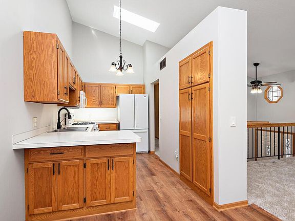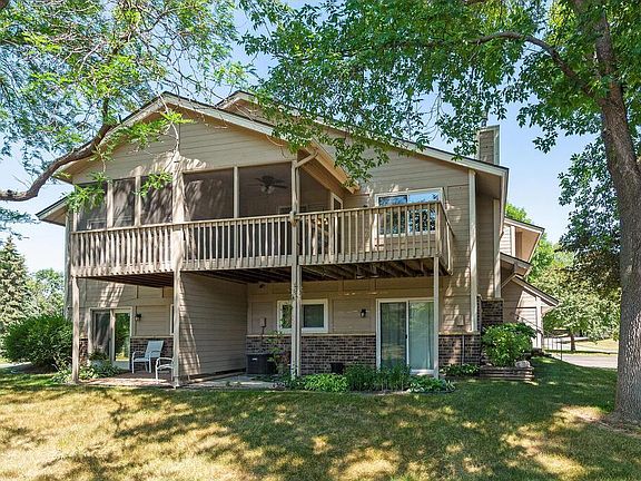Close in, to all Maple Grove has to offer and within walking distance to shopping and restaurants. This well-located townhome has 2BR, 2BA, with full wall brick gas fireplace in LL FAMILY ROOM. Room for adding a possible 3rd BR in lower level. Walk out to lower-level patio. Light and bright paint throughout. Relax in the 3-season screened porch off the main living area or grill out on the attached deck. Light paint with vaulted ceilings on main level. Skylight in kitchen provides ample light over the workspaces. LVP flooring in the kitchen, dining area and main bathroom. The main bathroom was expanded to include a double size shower (2 heads) and large soaking bathtub. Pets allowed with possible restrictions.