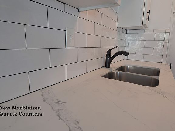 The kitchen boasts marble quartz counters paired with stainless steel appliances, offering both functionality and elegance. Mirrored closet doors add depth to the bedroom, while the stackable washer and dryer make laundry day effortless.