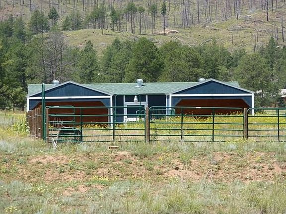 Custom built rancher conveniently located just 15 minutes from Woodland Park. Beautiful hardwood floors throughout main living area. Kitchen has stainless steel appliances, solid surface counters & large pantry. Master bath has double vanity, glass block shower, large walk-in closet, and bidet! Large lower level family room, with pellet stove & full bath. All appliances included. Main level laundry. Backs to Pike National Forest. Cross-fenced with two loafing sheds, hay storage area, and fenced paddock.