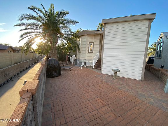 2011 2 bedroom 2 bath with custom Arizona addition.. Extremely well maintained! Large south facing back patio. Great mix of sun and shade! Outdoor storage shed with washer and dryer, plenty of parking and fantastic covered porch with Superstition Mtn views!