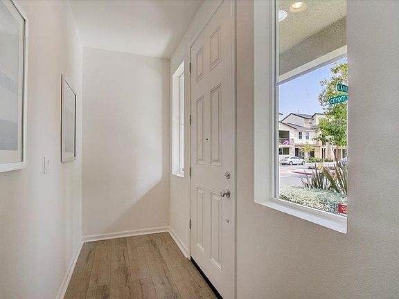 Gorgeous 2-story end unit Condo in sought-after Coyote Creek Community is ready to go! This 2/2.5 condo offers open concept luxurious kitchen w/ Quartz countertops, elegant backsplash & stainless steel appliances.Built-in buffet w/ glass cabinet doors. Track lighting. Freshly painted interiors, Dual-pane windows. Gleaming hardwood floors, Brand-new wall-to wall carpeting.Two spacious & sun-filled en-suite bedrooms w/ high ceiling. Master bath w/ upgraded countertop, stall shower & dual sink, Walk-in closet, Large Storage Closet, Lovely balcony area.Equipped w/ alarm system & fire sprinklers. Resort style amenities w/ heated pool, fitness center, clubhouse, BBQ area, fireplace & pet spa. Cerano Park, kids playground, tennis & basketball courts offered by the City. Direct access to Coyote Creek Trail, Low HOA dues, Near Google, Apple, FB, LinkedIn shuttle bus stops.Nearby Great Mall, Trader Joe's, Ranch 99 & restaurants. Minutes away from major hi-tech companies, Hwys & BART Station.