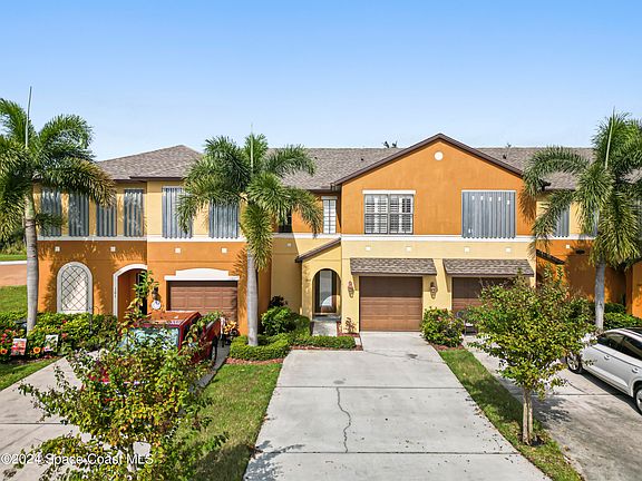 Move-in ready! Located in Meadow Pointe, Rockledge, this townhouse offers 3 bedrooms, 2 ½ bathrooms, and an attached 1-car garage. The open-concept layout on the first floor includes the living room, dining room, and kitchen, featuring gorgeous upgraded tile flooring throughout. Upstairs, you'll find carpeting in all bedrooms. The beautiful paved back porch provides plenty of space to relax outdoors and grill. The primary bedroom features a shower/tub combination and dual walk-in closets. The laundry room is conveniently located upstairs and includes a washer and dryer. The HOA covers internet, cable, lawn care, and more. Centrally located near I-95, US-1, Patrick Air Force Base, and just 15 minutes from the beach. Schedule your showing today!
