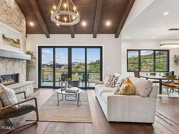 As low as 3.99% seller financing available to qualified buyers, And 2 Deer Valley Unlimited Ski Passes if under contract by 10/31/25 and upon successful closing in 2025. Crafted for those who seek both luxury and adventure, here you will find elevated living above the Jordanelle with a front-row seat to Park City's mountain skyline. This new home delivers more than just refined elegance —it's a basecamp for the good life. Featured in the 2024 PC Showcase of Homes, every element speaks to thoughtful design. The home reveals a mix of craftsmanship and comfort: wide-plank engineered wood floors anchor the living spaces, a chef's kitchen blends custom cabinetry with professional-grade appliances, and expansive windows frame the mountain backdrop like fine art. The great room's stone fireplace and gorgeous wood paneled vaulted ceiling pull the gathering space together, while the primary suite is its own retreat, complete with fireplace, spa bath finishes and radiant heat floor. Downstairs, entertainment takes center stage with a walk-out family room, wet bar, media room and custom finished guest suites designed to welcome friends without ever feeling crowded. Multiple decks and patios invite you outside for coffee at sunrise, colorful sunsets and stargazing over the lake at night. A 4-zone heating and cooling system, tankless water heater and heated garage offer maximum comfort and upgraded spray foam insulation provides an airtight home. This home also balances privacy with proximity. From the front door, it's minutes to Deer Valley's new East Village for fresh tracks and new trails, and a short drive to Park City Mountain's endless terrain, shopping and dining. Tee time is out the back door as Hideout's executive course winds through the community and the home is on the 2nd hole. Vast recreational opportunities in the Uintas or on the Jordanelle are just down the road. When adventure calls farther out, Salt Lake Airport is less than 45 minutes away.