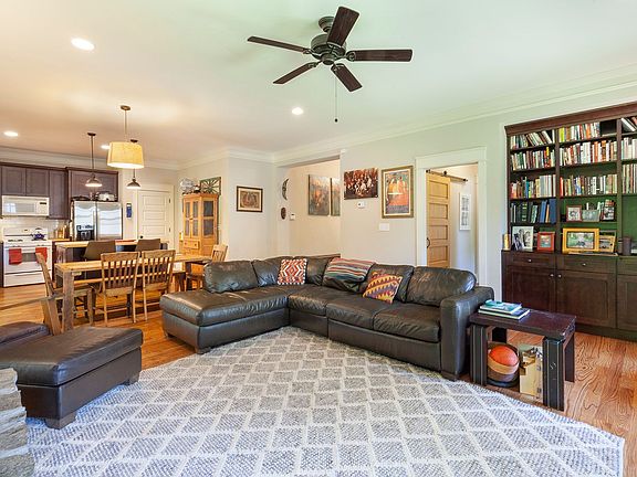 This home also features an eye opening foyer, hardwoods throughout, a kitchen with plenty of cabinet space and natural wood countertops, a walk-in pantry, gas range, built-in microwave, stainless steel refrigerator, a large and open living/dining room area with fireplace, a guest room on main with full bath, an office on main with full hall bath, two guest rooms upstairs with a shared full bath with a subway tiled shower/tub combo and granite countertops, a master bedroom with large windows overlooking the natural backyard and two walk-in closets, a gorgeous master bathroom with beautifully tiled stand-in shower and separate tub, a huge fully fenced in backyard with full privacy and awesome back porch, an equally nice front porch, a garden beds and blueberry bushes, a large storage building in the back and tons of additional storage throughout the interior, and included washer and dryer.