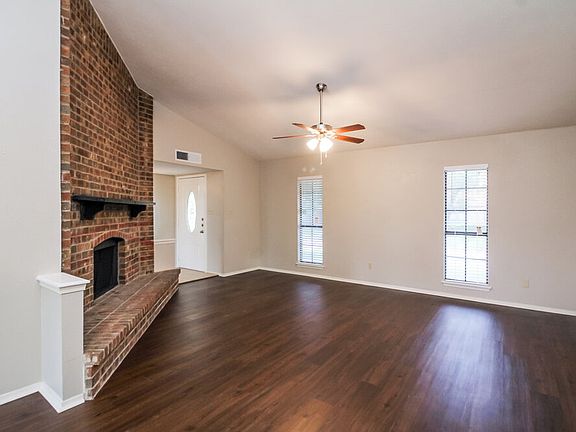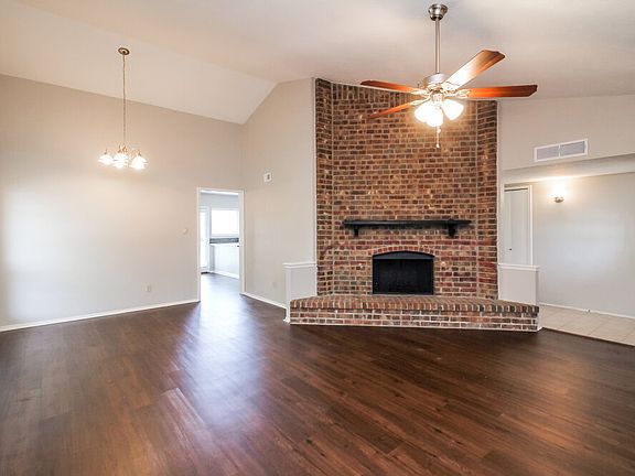 Attractive 3 bedroom, 2 bathroom home in Lancaster, TX sits on a corner lot and boasts a covered front porch entry, a spacious kitchen with a breakfast bar, a fireplace in the living room, and a master bedroom with a private bath. You will love the large backyard which includes a fence and a patio.