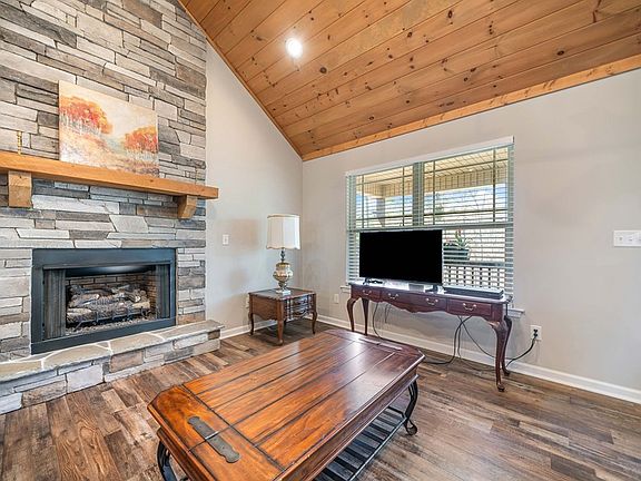 Welcome to true mountain community living! This adorable craftsman style cottage is in turn-key condition - offering a gorgeous open concept great room with stacked stone gas log fireplace, tongue-in-groove pine cathedral ceiling, LVP flooring through-out, granite countertops and white cabinetry. Morning coffee and evening beverages will be perfect on either the covered front or back porches, with a dip in the private outdoor spa tub to add to your relaxation. Generous master bedroom has an ensuite bath with double vanities and large step in shower. Two additional bedrooms and full bath make this a perfect vacation home, starter home or perfect for retirement. Front and rear yards are flat and easily fencible. Bonus feature is the oversized, two bay garage workshop that is foam insulated - so much storage and possibilities for this space! The furnishings can stay with the property at no added cost. Coosawattee River Resort is a gated mountain community close to the heart of downtown Ellijay, shopping and restaurants, wineries and so much outdoor activity options. Within the resort are three pools (including a year round indoor pool), rec center with meeting space, fitness center and game room, tennis and pickle ball, and several dog parks. There are numerous parks on either Mountaintown Creek or the Coosawattee River that offer picnic and BBQ space, kayaking and tubing AND trout fishing. Short and long term rentals are allowed.