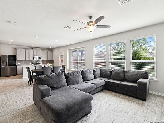 - One Living Area, Liv/Din Combo, Kitchen Island, Breakfast Bar, Pantry, Study/Library, Game Room, Utility Room Inside, All Bedrooms Upstairs, Open Floorplan, Ceiling Fan(s), Solid Counter Tops
