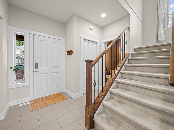 Built by award-winning Portrait Homes, this showhome sits on a 4,700sqft. corner lot, surrounded by mature hedges providing both privacy and tranquility. Filled with natural light, the open-concept main floor seamlessly connects the kitchen, dining, and living spaces. The upper floor offers a vaulted-ceiling primary suite with walk-in closet, plus a laundry room and two bedrooms. Recent upgrades include A/C, irrigation system, fresh paint, and 200-amp electrical service ideal for EV charging. The fully finished basement offers even more living space with a guest bedroom, bar, and rec room. Situated in Silver Valley, this home is perfectly located near top-rated schools, parks, hiking trails, camping, and boating. A rare opportunity to enjoy both natural beauty and modern convenience.