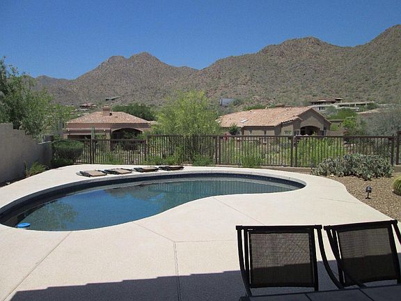Peaceful. Quiet. Safe. Recent complete interior & exterior remodel 3 bedroom 2 bath in beautiful 24 hour security guard gated Scottsdale Mountain Estates tucked in the hillside of the McDowell Mountains. Located on cul de sac street and on arroyo so you have no neighbors directly in back of you providing unobstructed views of the McDowell Mountains. Pool table is gone, Large master bedroom wake up to incredible views of the McDowell Mountains plus large walk in closet your wife will love u for. His and hers bathroom vanities new counter new cabinets with separate tub and shower. The master bedroom is split from other 2 bedrooms for privacy. The other 2 bedrooms have full bath to share. New floor tile throughout entire house . Living room/Dining room combo (pool table in photo has been removed). Brand new kitchen new counters new cabinets, all appliances including washer dryer. 2 car garage. Walk out to backyard that is very special with pebblesheen pool and stunning views to die for. Very quiet, private, safe, 24 hour guard gated community with tennis courts and 12 person jacuzzi located on the side of the mountain with endless views of the entire valley. BASIS grammar school just 2 minute drive from house. BASIS high school ranked 29th in USA just 5 minute drive from house. Highly rated Desert Mountain High, Mountainside Middle and Anasazi Elementary schools just 5 minute drive. Maintenance, landscaping and pool service included. If seriously interested I will provide an application to you so u don't have to pay fee in Zillow just ask me for application. Good luck! Available November 16 2025