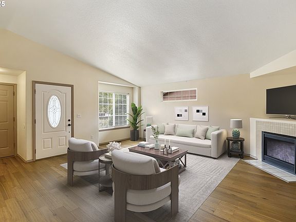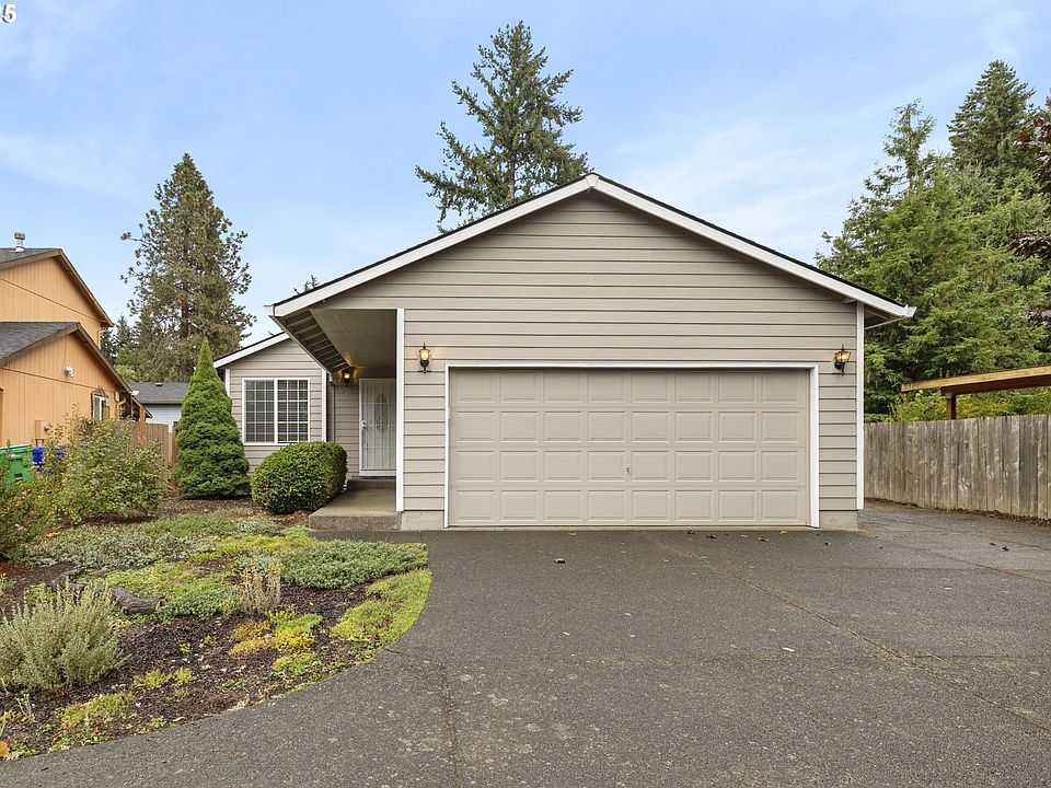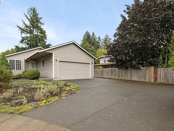 Tucked away in a cul-de-sac, this beautifully maintained one-level home is packed with charm and updates throughout. The spacious, fenced lot is a gardener’s dream, featuring raised garden beds, a thriving pollinator garden with rain barrel irrigation, and a Tuff Shed for all your tools. Step inside to discover brand new natural hardwood floors with 25 year warranty, vaulted ceilings, generously sized primary suite, and large open living spaces anchored by a cozy gas fireplace. The bright kitchen offers updated appliances and plenty of counter space. Other features include a new hot water heater, smart thermostat, skylights, walk-in shower, and regularly serviced systems. Lots of parking options along with space for an RV. This property is exceptionally well-maintained and offers a quiet yet convenient location. [Home Energy Score = 7. HES Report at https://rpt.greenbuildingregistry.com/hes/OR10142050]