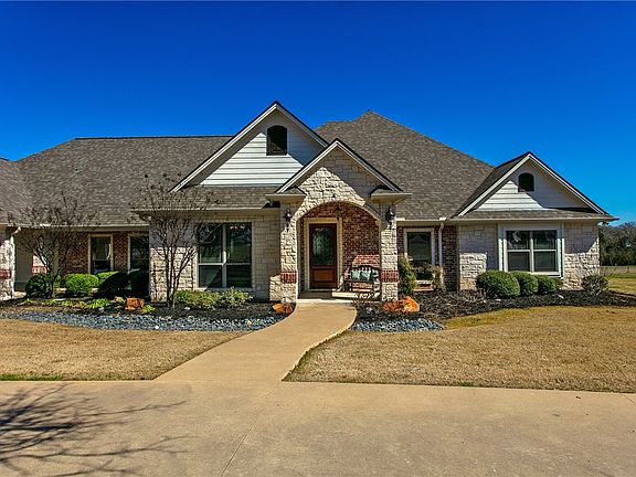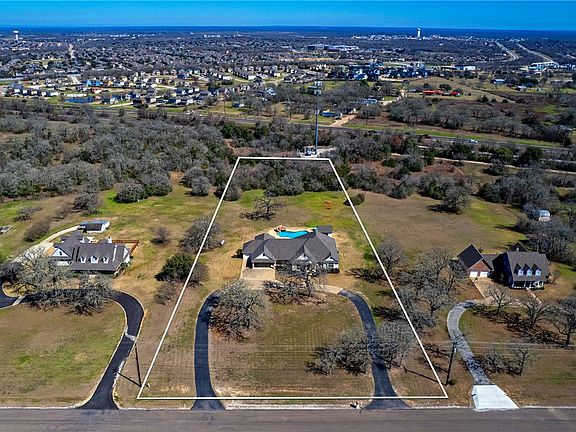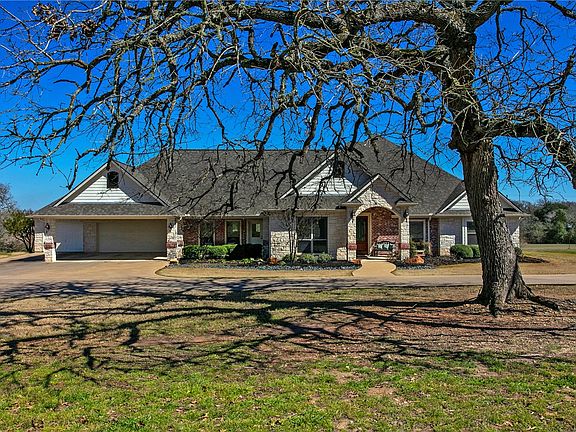 Enjoy the best of both worlds—spacious land for your horses with city conveniences nearby! Entering the circle drive, you will discover a professional landscaped yard and white rock Austin stone home with brick all around. This expansive one-story home offers over 4,000 sq ft of living space on 3.5 private acres. This home features multiple living areas, a game room, and a craft room and flex room. Highlights include beautiful hardwood floors, recessed ceilings, a kitchen with granite counters and an island with a bar and a wall of windows in the family room overlooking the sparkling pool. The craft room could be used for multiple purposes including a home office with built in bookshelves. The primary suite is a true retreat with backyard access and jetted tub and vanity area. A true split floor plan with 2 bedrooms sharing Jack/Jill bathroom and the other bedroom with it's own bath. Enjoy the large gameroom with endless entertaining possibilities and a large laundry room with space for your 2nd fridge. Outside, enjoy your summer nights relaxing in your private oasis with a sparkling pool, hot tub, rock slide and grotto, an outdoor kitchen, and covered pavilion with storage and an additional sitting area. About 5 miles to Kyle Field, with a scenic view from the top of the driveway! Willow Run Subdivision offers plenty of space and a convenient location to shopping, restaurants, schools and hospitals. Did we mention there is NO annual HOA!?