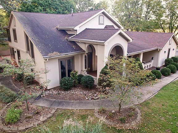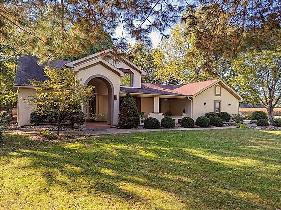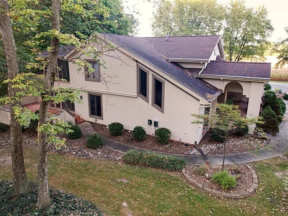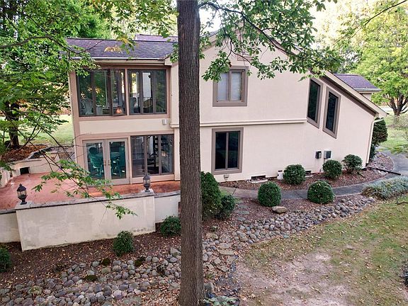 This pristine 4 bed/3 bath home adds a modern Mediterranean style with an idyllic wooded setting, then exponentially increases the wow factor w/the magic of two heated sunrooms connected by a spiral staircase. Once you factor in the peace of mind that comes w/a LOT of big-ticket upgrades, we think you'll agree it's a truly winning formula. Cared for with precision & pride, this beauty features a new roof (2015), new HVAC, several new appliances, updated plumbing and wiring (2021-22) & lots of fresh paint and flooring. It has been surveyed & lot lines are clearly marked, so you know exactly where your private 5 acres start and stop. The new portable shed stays, as do the appliances, and the custom Murphy beds in two of the upstairs bedrooms. The home is energy efficient, light, & bright, & with lots of closet space, a 3 car garage, & a full, partially finished basement, you won't run out of room. And the back patio will make YOU the go-to house for summer fun with friends and family! Additional Rooms: Sun Room