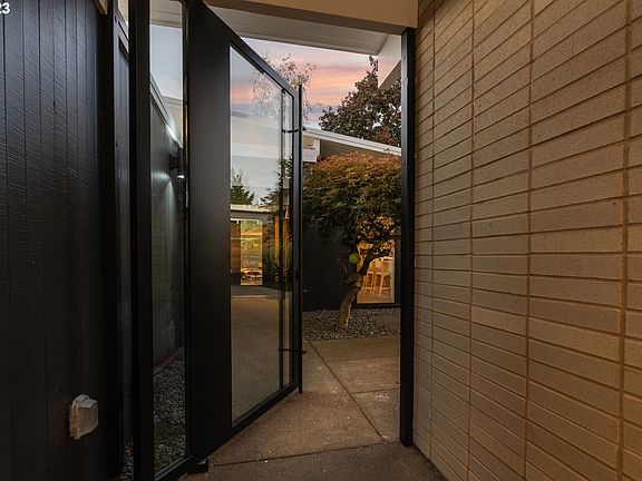 A Rummer like no other - this beautifully designed space is the residence of a Principal at the renowned local interior design firm Vida Design.This offering is a rare opportunity to own a home that has been completely renovated with every detail considered by a talented designer.One of the rare courtyard models(OC-041),the custom pivot glass door entrance brings you into the open courtyard that provides a private outdoor living space the kitchen and detached studio space overlook.The interior living room combined with dining space features vaulted tongue and groove natural wood ceilings with exposed beams,floor to ceiling windows+clerestory windows that flood the interior with natural light.The wood burning fireplace with custom wood detail surround anchors the living space while custom built in benches in the dining area create a beautiful and functional space.The intelligently designed kitchen features a Viking gas range,walk-in pantry,quartz counters,custom wall cabinets with Euro wood hardware and a wine refrigerator.The primary suite has designer fixtures,walk-in closet,Carrera marble tile walls in the bath,slate tiles in the Roman tub/shower,custom frosted window & glass door.The one level floor plan also features 2 additional bedrooms with sliding glass doors and custom closets,a bathroom updated with concrete tiles and Brizo fixtures,white oak floors throughout with radiant heat and a double car garage w a Tesla charging station.The landscaped exterior is a low maintenance dream with custom concrete finishes,turf lawn,raised herb garden,a built-in fireplace and spa with a custom deck surround.This gorgeous home is a perfect balance of modern minimalist elements combined with a natural palate and materials that provides a serene,private space both inside and out.Close to Nike,Intel,downtown.