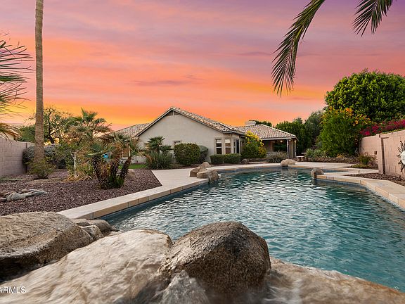 STUNNING BACKYARD PARADISE,BRAND NEW EXTERIOR VENTED IRON DOORS THROUGHOUT, 3100 SF+ SINGLE STORY,GATED COMMUNITY located in cul-de-sac,across from park!! Spacious NE facing backyard features built-in gas grill island including built-in cooler & seating area,putting green,fire pit,huge covered patio,above ground hot tub,sparkling pool w/waterfall & grassy area. Come see this amazing split-floor plan, 4 bed/2.5 bath home with beautiful outdoor amenities. Separate living/dining areas PLUS open kitchen/great room concept. Gorgeous kitchen with spacious cherry cabinets, crown molding, granite counters & stainless steel appliances. Huge workroom directly off the garage! Master Bedroom suite overlooks backyard. You'll love the separate bedroom wing, large bedrooms, & abundant storage throughout
