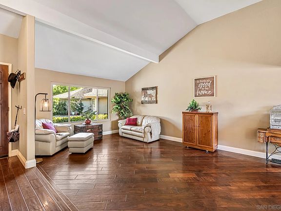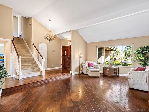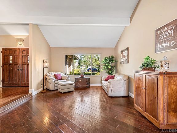 Don't miss this opportunity to own a home in the desirable Country Creek Estates Neighborhood of Poway! This 4 bed, 2.5 bath home sits on 1/3rd+ acre and is situated at the end of a cul-de-sac, creating the perfect piece of property. Walk inside to find a living room with a cathedral style ceiling and hardwood floors that flow into a formal dining room, making it a great area to entertain. Enjoy the gourmet kitchen with granite countertops and stainless steel appliances that opens up to a cozy family room with a fireplace. The master bedroom is spacious with a deck overlooking the backyard, an en-suite bathroom with dual sinks, a jetting soaking tub and large walk-in closet. Get ready to enjoy the warm weather in this spacious backyard complete with a heated in-ground pool and spa, large area for guests, storage shed, and your own personal saloon. Need to run the AC? Solar panels are paid in full! Your new home is walking distance to the elementary and middle schools and is minutes away from parks, shopping, restaurants and Lake Poway.