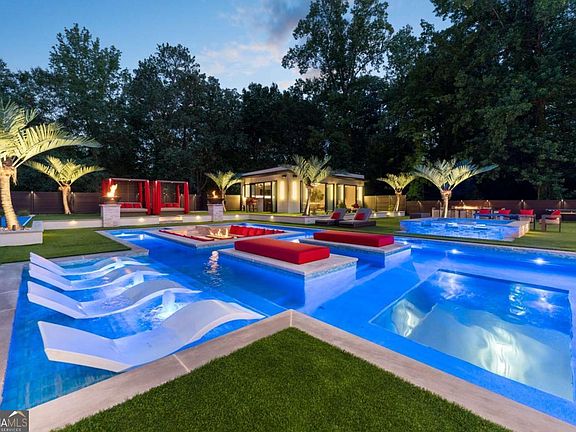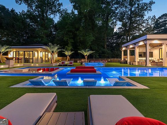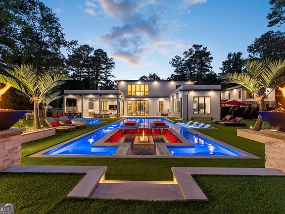 Gold Winner of the 2025 OBIE awards! Privacy in the City! Sitting on almost 2 acres set back 150 feet off the road, this NEW CONSTRUCTION MODERN GATED ESTATE provides PRIVACY and SECURITY on all four sides. AMAZING LOCATION with HUGE LEVEL LOT in the most prestigious zipcode in Atlanta, only 2 minutes from Westminster private school and a quick ride to the airport. Priced $3Million below appraised value!! Designed and built by Stephanie Bell of Bella Fine Homes, this is a home you will never want to leave!! Focusing on superior quality and attention to detail. Some of the amenities include a separate very luxurious 1250 sq ft guest house, space for 40 cars! 16' wide Bellagio style dancing water fountain in front of home, GLASS BOTTOM POOL looking down into a TWO LANE BOWLING ALLEY, 9 hole putting green with 3 bunkers, pickleball court, basketball court, 12 person spa, 5 Fire Features, Heated and conditioned cabana with full Service bar, dual beer tap and lounge area. Heated covered patio with outdoor kitchen, gas grill and Green egg. Outdoor bathroom and pool shower. MAIN LEVEL SPA with full spectrum infrared sauna w/ chromotherapy light, steam room w/ chromotherapy light, hair wash station, 2 hair/makeup stations and massage table. Terrace level full service bar, billiards room, Poker Room, Gym with full bath, patio with water wall, arcade room, movie theatre and 8 person adult sized custom built bunk room with full bath. 4 laundry rooms with garment steamer and built-in ironing board. Full automation of all light fixtures throughout home. Full automation of shades. Sonos sound system with in-ceiling speakers throughout home. This home is being sold fully furnished with high end furniture, decor and art. There has never been a home built like this in Atlanta!! Crypto Accepted. Build out recording studio available.