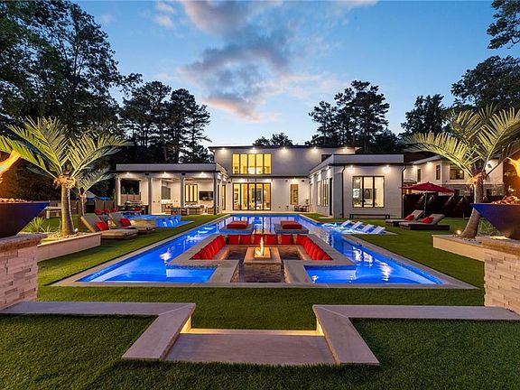 First of a kind in Atlanta! Ultra Custom and Ultra Luxury Modern New Construction in the most prestigious zip code of the Atlanta/Buckhead area. Very private lot nearing 2 acres, just around the corner from Westminster and easy quick access to the Airport. House being sold fully furnished!! All brand new high-end furniture and art remains.***Home sits back 150ft from the street with a gated entrance and Bellagio inspired water show fountain in the front circle of the driveway entry*Designer pavers on entire driveway*Parking for 40 cars*65-foot heated salt water Swimming Pool with glass bottom looking down into two 50' Bowling Alley lanes below*Two 50' Bowling Alley lanes with glass bottom pool above!!*Luxurious two-bedroom 1212 sq ft Guest house with full gourmet kitchen*Gym with full bath and closet*Arcade Room with commercial grade arcade games*Poker Room opens to patio with water wall*Automated Shades and Automated Lighting throughout - turn on/off or schedule over 200 light fixtures with just a touch of a button*Central Vac system entire house including guest house*Elevator*Custom bunk room with 8 built-in adult size bunk beds each with its own lighting and charging ports*Spa room on main level with Steam Room, Infrared Sauna, massage table, hair wash station, 2 styling/makeup counters*11 Smart Toilets with built in bidets*3" mitered quartzite countertops in kitchen and all bathrooms with floating vanities*In-ceiling Sonos sound system throughout home*24-foot and 12-foot ceilings on main level*10-foot tall solid interior doors*Elegant Glass stair railings*Smart home Automation*Master Closet with floor to ceiling amber glass doors with built-in vertical LED lighting, fingerprint access locks on drawers, two islands and 30 drawers*4 Laundry Rooms, Garment Steam unit, built-in ironing board*3 Kitchens with 9 ovens, 2 built-in espresso machines, 3 ice machines, 5 wine coolers, 5 microwaves, 2 warming drawers and 4 refrigerators*Pella Clad Windows with lifetime warranty*Heated Floors master bath and closet*Home Theater with stadium seating, 200" screen, power recline seating with charging stations*4-Car Garage with modern black glass doors, electric charging ports, prewired for climate control and has plenty of additional storage*Full house commercial size 80 KW Generator operates entire house including HVAC*Entire backyard Astroturf for the year round manicured look*Covered porch area with outdoor pool bath, shower, fire table, patio heaters, Big Green Egg smoker and an oversized grill* 3-Point Basketball Court*Pickleball Court*Golf Putting Green with bunkers*Brand new high-end furniture, art and decor included in purchase price*** Click on Video!