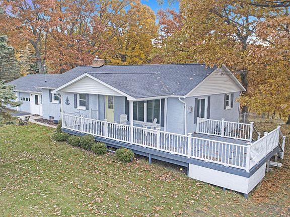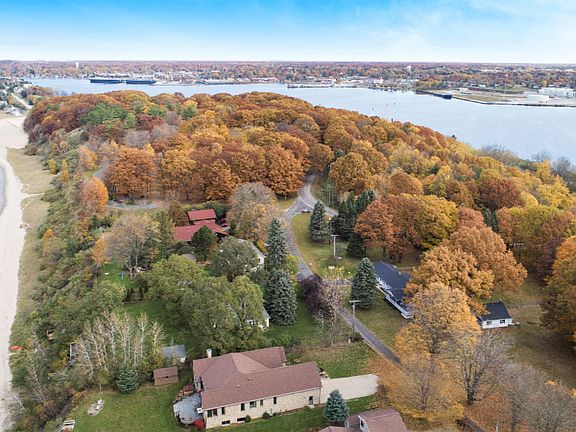 Enjoy views of Lake Michigan from your front porch! A unique opportunity to own 2.28 acres across the street from the lake. Around the bend from Buttersville Peninsula, enjoy the sugar sand on Buttersville Beach, just a short walk from your house. The kitchen has brand new quartz counter tops and new stainless steel appliances. Main floor master suite has a private full bath. The finished basement has 2 bedrooms with egress windows, a full bath, and a family room with a fireplace. There is an attached 2 car garage, another detached 24x24 2 level insulated garage, and a pole barn that is 32x39. Back yard is fully fenced, with a 550' chain-link fence. Buttersville campground is steps away. So many ways to enjoy the outdoors with this home.