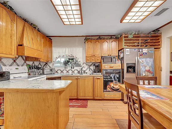 Wonderful 4 bdrm/ 2 bath home in Kendale Lakes neighborhood. Formal entry. Formal dining room. Family room has french doors out to the patio and back yard. Cozy kitchen with built-in breakfast nook. Newer AC. Laminate flooring. Paved side yard for storage. Additional storage building in backyard with roll down garage door and wall unit AC used as a workshop currently. Bonus room/den previously a garage.