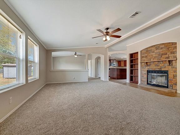 Sitting on 1.75 acres, this 3BR/2BA double wide mobile home is move-in ready with new flooring, fresh interior & exterior paint, full sheetrock, high ceilings, and energy-efficient double-paned windows. Gather around the cozy wood-burning fireplace or relax on the brand-new wooden deck—perfect for morning coffee or rocking chairs. The bright kitchen comes equipped with stainless & black appliances, while the oversized laundry room provides plenty of space for a freezer or extra storage. The primary suite offers a walk-in closet, soaking tub, and separate shower for a true retreat. The secondary bedrooms are spacious and both have walk in closets. Outside, enjoy room to roam with a pole barn ready for your personal touch. Conveniently located just 10 minutes from Cushing, Mt. Enterprise & Henderson, this home delivers comfort, updates, and a peaceful setting.