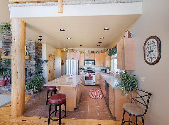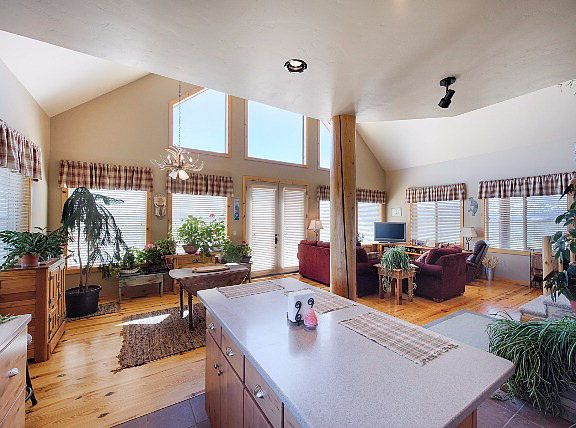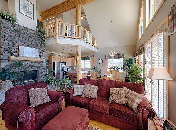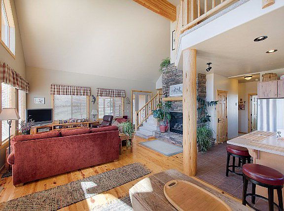 Beautiful, custom-built home by well-known local builder, Mark deJong, with open floor plan, stacked-stone propane fireplace in LR, wooden flooring, stainless steel appliances, propane range & pantry. Main level: 2 BR & 1 BA w/handicap access shower. Large, upper-level MBR suite has walk-in closet & additional storage. MBA has tiled counter tops, jacuzzi tub & walk-in shower. The 9 ft ceilings make the entire home feel spacious, the south-facing windows provide abundant natural light & warmth in the winter. Attached 2 car garage. Extensive landscaping, decks, & a sprinkler system. Expansive views to the south, plenty of privacy from neighboring homes. Furniture is available on separate invoice. Corners are marked. Built-in office desk is included.