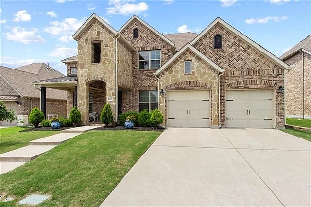 MULTIPLE OFFERS RECD. BEAUTIFULLY MAINTAINED NORTHEAST FACING HOME IN FRISCO, ZONED TO PROSPER SCHOOLS in 5 STAR MIRAMONTE*If you've been searching for a new home in Frisco, your wait is over!*This property is BETTER THAN NEW*Gorgeous curb appeal with stone and brick elevation, plush landscaping*Lrg front porch to greet friends and family*Formal dining rm features huge butlers pantry*SOARING CEILINGS in family rm boasting with natural light from wall of windows*Open concept family rm, kitchen, brkfast bar, brkfast nook perfect for entertaining and family gatherings*Elegant Quartz countertops, Stainless steel appliances, oversized gas cooktop, double ovens, dishwasher, built-in microwave*MASTER bedrm and SECONDARY bedrm w ensuite bathrms DOWNSTAIRS*Gorgeous winding staircase leading to a spacious gamerm with multiple areas*3 bedrms, Jack Jill bathrm plus 1 addl priv bath upstairs*Large bonus room*Huge yard*Oversized garage*Water softnr pur system*Within min of elem school*GREAT LOCATION