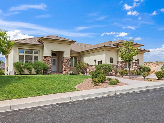 Luxurious 4 bedroom, 3 ½ bathroom dream home located on a spacious landscaped 1.04 acre lot with spectacular views and mature fruit trees. Featuring an open concept living area with high ceilings and large windows that flood the space with natural light - making it the perfect space for entertaining guests or enjoying a quiet evening with family. 2 covered decks, large patio, and private rooftop deck provide panoramic views of the valley, scenic mountains, and breath taking sunsets. The modern kitchen boasts high end appliances, granite countertops, ample cabinetry, a butler kitchen and generous pantry - making it a chef's dream! The master suite on the main level offers a serene escape with a private deck, an enormous walk-in closet connected to the laundry room, and a luxurious en-suite bathroom featuring a soaking tub, a beautiful separate shower, and ample storage drawers. A roomy home office adds the perfect touch for the entrepreneur. Three additional bedrooms, a home theater, and an exercise room provide comfort, personal space, and entertainment for family members or guests. With a sizable RV garage, private lower garage, and massive amounts of storage space, there is plenty of room for all the toys. Outside, the expansive back yard features a pool and jacuzzi with slide, basketball court, gazebo, charming grape arbor, garden, and patio area for outdoor dining, festive gatherings, relaxation, recreation, and nourishment. Enjoy the delicious bounty of 28 mature fruit trees including apricot, apple, cherry, fig, pear, peach, persimmon, plumb, pomegranate, and Turkish mulberry.
