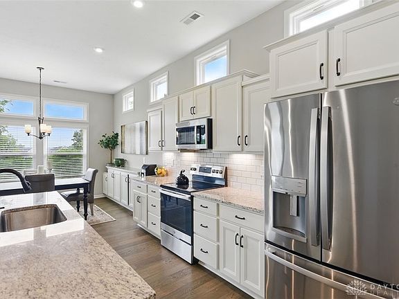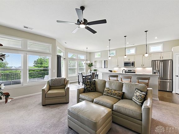 Penthouse end unit condo overlooking Shaker Run Golf Course offering 2BR/2.5 BA plus dedicated study with wainscoting. Unit also features a convenient powder room, in-unit laundry (equipped with washer/dryer) and an amazing open concept kitchen with walk-in and butler's pantries. Both bedrooms have private ensuite bathrooms providing privacy and convenience. The primary suite has a cathedral ceiling, spa bath and 3 closets. The neutral palette will coordinate with any decor. Amazing high ceilings, wood-cased windows and plenty of natural light. The property also offers an attached oversized two-car garage with room for a golf cart! The covered deck is added outdoor living space while providing protection from the elements. Neighborhood amenities include pools, an exercise facility, clubhouse, walking trails, and playgrounds. Established area of the community with no construction noise amazing views. Great location within minutes of I-75, retail, restaurants and entertainment.