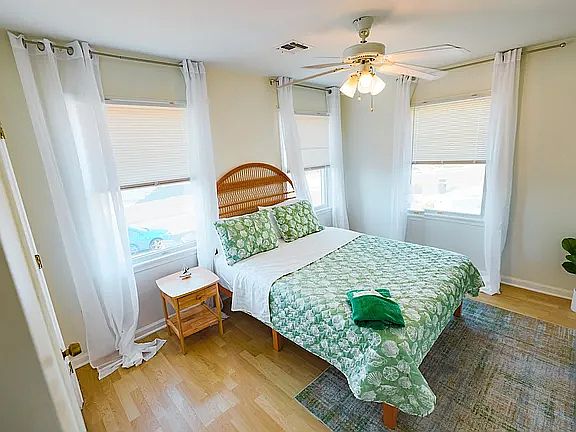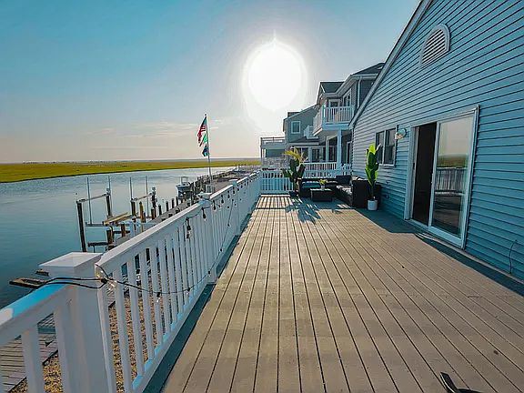 The property is located in the picturesque Beach Haven West community of Manahawkin in New Jersey. The house sits on the canal with the expansive view of the estuary. It is located just five miles from Long Beach Island. The upstairs apartment is being offered for rent. The apartment boasts three spacious, airy, and bright bedrooms with lots of windows that let the natural light in. The living room opens to the deck and shares an open plan with the kitchen and dining area. The kitchen is newly remodeled, with granite countertops and modern appliances. There are two full bathrooms, one attached to the master bedroom. Plenty of parking. The lease shall be for one year, with the option to renew with a 5% increase in rent. The tenant will be responsible for heating, hot water, and utilities (including gas and solar lease). No smoking of any kind on the property. The property will be leased unfurnished.