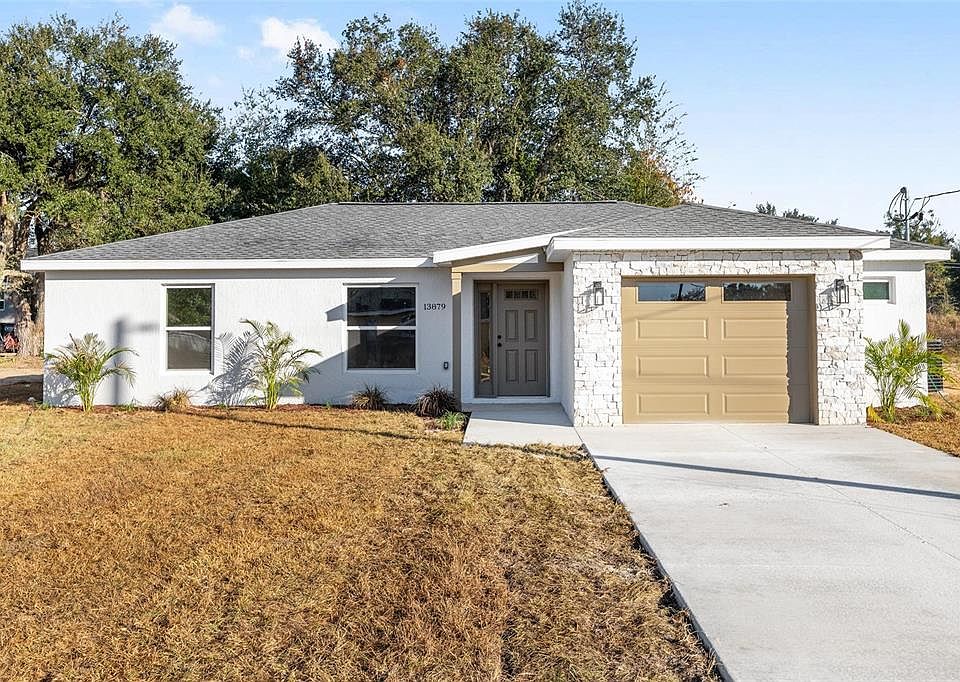 One or more photo(s) has been virtually staged. MOVE IN READY!! Custom home at a spec home price! This is not your average spec home. Be among the first to experience this beautifully designed home with many upgrades offering a fusion of modern comfort that’s perfect for families, first-time homebuyers, or anyone looking for a fantastic investment opportunity. With 8’ ceilings in the bedrooms and vaulted ceilings in the social areas, this home welcomes you with a sense of openness and comfort. The heart of this home boasts soft-close wood cabinets adorned with crown molding features a pantry cabinet and "lazy susan", elegant stone countertops, tile backsplash and top-of-the-line stainless steel appliances, including a dishwasher. It's a chef's dream! The kitchen island and breakfast bar is adorned with pendant lighting adding a touch of sophistication to your space. The Primary suite features a spacious layout with a generously sized walk-in closet and ensuite bathroom. Step into your retreat that includes a walk-in shower featuring upgraded stone floor and wood look wall tiles with rain fall shower head, dual sinks and stone countertops giving this space the feel of a luxury spa. The guest wing is located on the other side of the home which includes 2 sizable bedrooms with built-in closets, guest bathroom featuring a tub/shower combo with tiled tub surround and stone vanity top. Luxury water-resistant vinyl plank flooring throughout the social areas and bedrooms not only looks beautiful but also ensures easy maintenance, making it perfect for families and pet owners. This home offers the perfect blend of functionality and aesthetics, ensuring you can enjoy modern living without breaking the bank. Your investment is protected by a limited Builder Warranty that expires 1 year after the issuance of the Certificate of Occupancy. This is a great location situated between Ocala and Dunnellon. Perfect for the outdoor or horse enthusiast minutes from World Equestrian Center, Rainbow Springs State Park, Rainbow River, KP Hole Park, Blue Run, Ross Prairie Trailhead and Goethe State Forest to name a few sites offering camping, biking, hiking, kayaking, paddle boarding, swimming, snorkeling, wildlife and so much more! This home is a must see and will not last at this price. Schedule your private tour today! Estimated completion dates are only an estimate and can be delayed due to unforeseen circumstances. Home is FHA, VA and USDA Eligible. No HOA or deed restrictions. SELLER CONCESSIONS TOWARDS RATE BUY DOWN OR CLOSING COST ASSISTANCE WHEN USING SELLER'S PREFERRED LENDER. FIRST TIME HOME BUYER INCENTIVES INCLUDING THE HOMETOWN HEROES PROGRAM AND DOWN PAYMENT ASSISTANCE ALSO AVAILABLE THROUGH SELLER'S PREFERRED LENDER WITH POSSIBLY NO MONEY DOWN FOR QUALIFIED BUYERS!