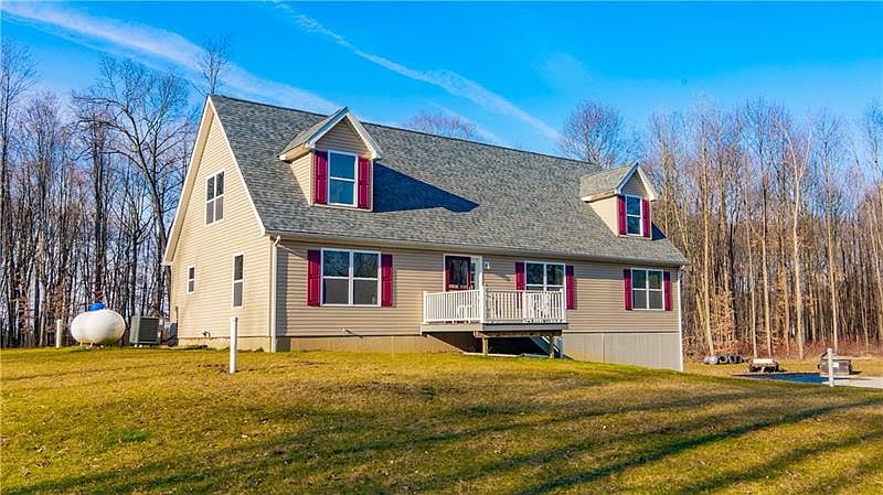 Drive back this long, curving driveway and you will find this rare gem only 2 years old nestled in the middle of 14.89 wooded acres! If you are looking for seclusion, this is for you! Beautiful Cape Cod home with open floor plan, high ceilings and spacious room sizes. Stunning kitchen with espresso Kabinet Maid cabinetry, center island and stainless appliances. Master bedroom with walk-in closet and large private bath on the main level. 2nd bedroom, half bath and 14x7 laundry room also on the 1st floor. HUGE upper level with 2 more bedrooms, full bathroom and den area between the rooms. Trim and doors will be installed in the next week. Finished walk out basement with family room and custom designed wet bar complete with beer meister! 2 car integral garage with enough length for two more cars. Grove City SD, only 5 miles to I-80. SEE BONNERBIBZA.COM FOR DRONE VIDEO!! NO DRIVE BY'S, BY APPOINTMENT ONLY! Seller has two dogs loose on the property.