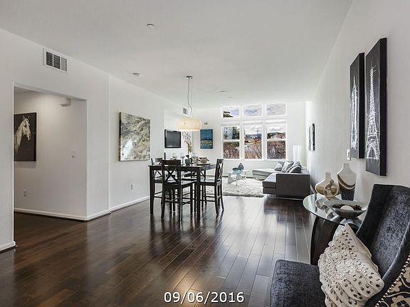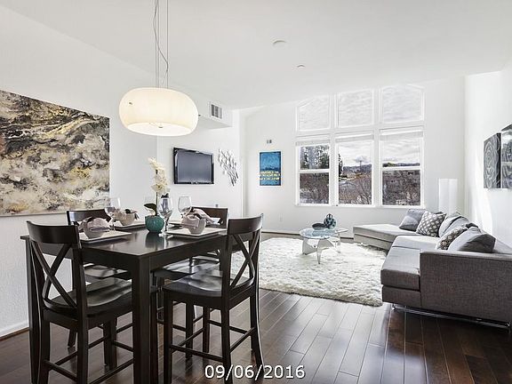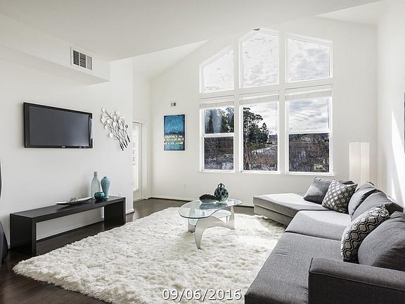 This luxury top floor penthouse condominium is located in the prestigious Park Broadway gated community. Located on the 4th floor, this open concept home features a cathedral ceiling in the great room which opens onto a private balcony. This combination offers a stunning panoramic view of the Millbrae Hills. The home features an impressive gourmet kitchen completely done with GE Cafe Stainless Steel appliances including a gas range with dual ovens, a 3 rack dishwasher, and a Kobe professional range hood. In addition to the granite counter tops with a breakfast bar, all kitchen cabinets have drawers with extension runners for easy access to your kitchen utensils. The master suite features a bathroom with an oval soaking tub and dual sinks; and two walk-in closets with custom closet systems. 3M window film treatment on all windows, custom wide plank wood floors, ceramic tile and luxurious carpeting add the finishing touches to this elegant home. Numerous complex amenities.