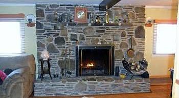 Nice curb appeal for this country home; includes flagstone patio in back, garden shed, stone fireplace, heated sun room.