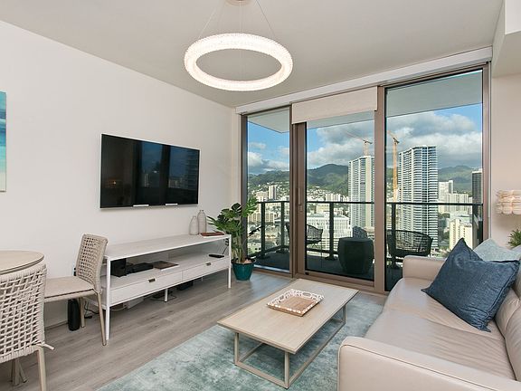 Experience upscale island living at Sky Ala Moana, where luxury meets convenience in the heart of Honolulu. This stunning furnished 2-bedroom, 2-bathroom condo with hard surface floors throughout offers ocean and mountain views, perfect for those seeking a serene and stylish home in paradise. Enjoy the resort amenities that include a fitness center, lap pool, hot tub, men and women's spa which features saunas, steam room, hot & cold plunge pools, a pool bar and restaurant. Perfectly located across from Ala Moana Shopping Center, the Convention Center and fantastic restaurants. Minimum 6 month lease required, base rent + GET and utilities.