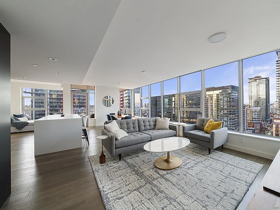 Savina Residence 2004 – Elevated Corner Living in San Diego’s Newest High-Rise Welcome to Residence 2004 at Savina—Downtown San Diego’s most coveted luxury high-rise, ideally located just steps from the waterfront and vibrant Little Italy. This northeast-facing corner home on the 20th floor offers sweeping city and bay views from nearly every room and an expansive balcony perfect for relaxing or entertaining. Spanning 1,444 sqft, this 2BR/2BA + den/nook residence features a spacious open-concept great room, hardwood flooring, custom closets, power shades, and generous storage throughout. The primary suite includes a large walk-in closet, while the kitchen and living areas flow seamlessly—designed for modern urban living. This home is in pristine, move-in-ready condition. Savina offers over 24,000 sqft of resort-style amenities including an elegant lobby with concierge, business lounge, state-of-the-art fitness center with outdoor yoga terrace, spa with sauna and steam room, and a lush pool terrace with cabanas, fire features, and communal dining areas. Additional perks include a social lounge with chef’s kitchen and billiards, pet retreat, bike tune-up station, EV charging, and secure resident access. This is your opportunity to own in one of San Diego’s most sophisticated residential towers—luxury, lifestyle, and location all in one.
