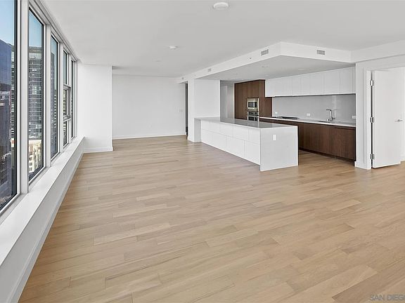Welcome to Unit 1502 at Savina by Bosa, one of Downtown San Diego's premier luxury residences. This further elevated northwest corner unit offers sweeping, unobstructed bay views and unmatched living space. Enjoy refined urban living with designer finishes, wood flooring throughout, and a well-designed layout featuring 2 spacious bedrooms, 2 bathrooms, a versatile den/home office, and a large sky patio perfect for entertaining or relaxing. The split-bedroom layout ensures privacy and functionality, while the two side-by-side parking spaces add convenience. Perfectly positioned between the Harborfront and Little Italy, Savina 1502 offers sophisticated luxury living in a vibrant, walkable location. Experience the best bay view in America's Finest City. Savina 1502 was featured as big bay's "DREAM PLACE to be" in America's Finest City. This 2 bed 2 bath plus den/home office northwest facing corner unit, offers families and individuals a rare opportunity to live in San Diego's latest luxury building, in the most vibrant community, with magnificent water view. Don't miss this one. A collection of over 24,000 square feet of indoor-outdoor amenities extends your living space. Resort inspired pool terrace, a spa-like sauna and steam room and a social resident lounge, pet retreat, bike storage. Ground level accesses to retailers. Walk to city's best restaurants, coffee shops, waterfront park and outdoor venues. 5 mins drive to San Diego International Airport. 15 mins drive to UCSD.