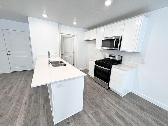 Come take a look at this beautiful townhome, located in Spanish Fork! This three bed two bath home is accompanied with a spacious two car garage, walk in closets, a great living room/kitchen, and a private laundry room. In the community you have access to a pool, play ground, pickleball courts, and easy free way access. This home is surrounded by gas stations, a neighborhood Walmart, several restaurants and more!