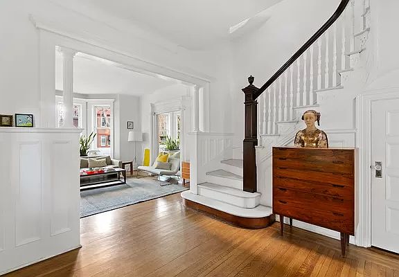 Move right into this country estate in the city! Rarely available semi-detached brick property on the prettiest block in Crown Heights. Enjoy three-exposures, a huge wraparound garden, your very own parking space, central AC, and a 4-story renovated home with no equal. This neo-Gothic mini mansion has been updated throughout but still retains incredible original details. Experience a piece of history through the fully restored arched windows, inlaid floors, oversized Piers mirror, Greek columns, plaster moldings, stained glass transom, and the stunning brick faade and gabled roof. A private paved alley takes you right up to the back of the house where you can park your car and easily unload your groceries and take them right into the kitchen. Three exposures all look out onto your very own front, back and side gardens, all masterfully landscaped with perennials, grass and hardscaping. Head into the magnificent home through a glass sunroom with a lovely slate floor that doubles as a mud room. A central foyer greets you upon entering the parlor floor, along with a dramatic center staircase that includes a mahogany newel post and banisters. The living room has the perfect proportions for oversized furniture and the current owners have juxtaposed mid-century modern lighting against a light historical backdrop including the oversized Piers mirror & columns. On the other side of the foyer is a formal dining living room with wainscoted walls, plus a curved window seat for yard-gazing.