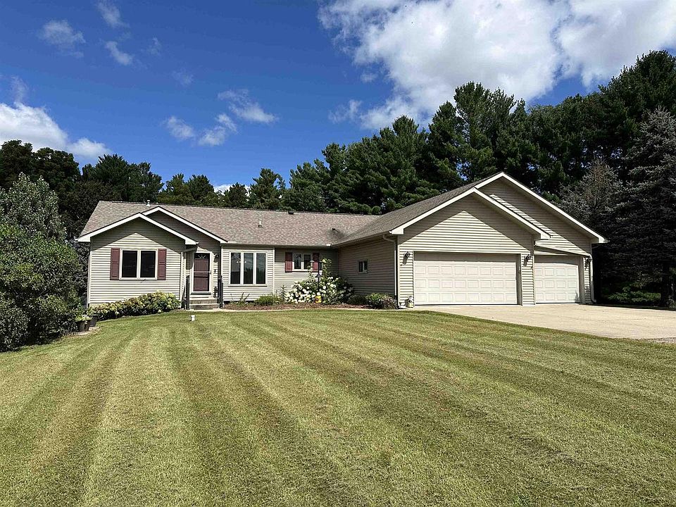 Enjoy Lake Front Living on Big Roche Cri, 20 minutes from Sand Valley Golf course, Lake Petenwell, and Castle Rock Lake! This stunning ranch offers the perfect mix of comfort, space, and recreation. With 125 ft of shoreline, you?ll enjoy the lake year-round. Step inside and you?ll find a cozy gas fireplace, four season porch with access to a deck. The kitchen is spacious with cherry cabinetry, and stainless-steel appliances. Main level offers a primary suite with full bathroom and jetted tub. On the lower level, a second kitchen, a walk-out screened porch, game room and a den/office area. Entertain outside with ease on the deck or enjoy the fire pit in the expansive backyard. Plenty of storage with a 3-car heated garage + 30x40 steel outbuilding! Listing agent is related to seller.