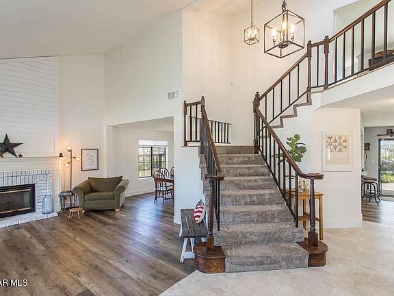 Perched atop a ridgeline, this home enjoys sweeping views of the surrounding valleys and mountains. You can literally see for miles all around! From sunrise to sunset and beyond, you'll never get tired of this view. It's spectacular and you can enjoy these views from just about every room in the house! As if that's not enough, the home itself has loads to offer. As you enter, you're greeted by vaulted ceilings and a spacious formal living room with toasty fireplace with shiplap accent and a bay window. The stylish kitchen boasts quartz countertops, stainless steel appliances, newer hardware, a walk-in pantry, breakfast bar and room for casual dining. In the middle of all the action, it's adjacent to the family room and looks out onto the pool and spa. The flow of this home is ideal for entertaining and there's plenty of room for all your family and friends! As great as this is, you may never want to leave your master suite. It features a large retreat that's perfect as an office, nursery or space to exercise. There's also a cozy fireplace, a walk-in closet and a wrap-around balcony where you can relax with both east and north facing views. The master bath has newer dual vanities with carrara marble, tile flooring, a soaking tub and separate stall shower. The second level also offers two good sized bedrooms with walk-in closets and a shared jack-and-jill bath with newer vanities and tile flooring. There is also a bedroom and full bath on the first floor which is great for guests. That bath has a convenient door to the side yard, so your pool guests can have easy restroom access. Other improvements within the last two years include: interior paint and new flooring throughout - primarily waterproof SPC plank with tile in the entry and baths, new doors and added storage loft in garage, removable pool fencing, additional parking area added with fencing and landscape lighting. The rear, front and side yards all have tremendous views. Soak it in from the flagstone trimmed, salt-water pool & spa or while entertaining on the upper deck or under the covered patio. But wait, there's also plenty of grassy area for play, pets or to exercise your green thumb. This property is truly a rare offering. Schedule your private viewing appointment today!