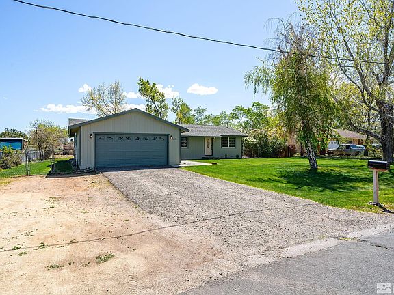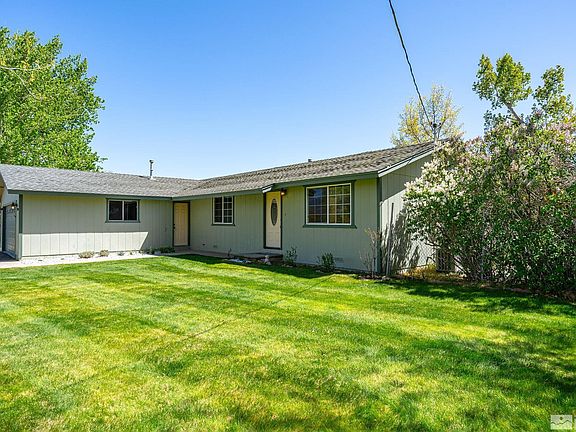 A lilac by any other name would smell as sweet and this home’s accessory dwelling unit called an in-law quarter is still its separate apartment with a bedroom, kitchenette, and bathroom that is part of the whole home’s entire 2008 square feet and 4 bedrooms, 3 bathrooms, and 2-car garage on 0.55 acres in Gardnerville Ranchos. Get ready to move into this move-in-ready home with kitchen and bathroom updates and new flooring and interior paint by readying a best offer now before someone calls this house home., Originally constructed in 1972, updates found throughout the home also keep this living room up to date. The luxe faux wood design of that formal room’s luxury vinyl plank flooring is also laid down in the family room and down the hallway. Grab a jacket from the coat closet before exiting the living room out the entry door. The up-to-date kitchen features upgraded custom KraftMaid cabinetry craftily designed with soft close doors and drawers, pull-out cabinets, cabinets with pull-out drawers, and even drawers having pull-out drawers. Serve a green eggs and ham combo cooked on the 4-burner electric stove and oven combo to Sam I Am sitting in any of a possible 1 chair, 2 chair, red chair, blue chair at the 4-seat breakfast bar. Leave leftovers in the refrigerator for awhile while loading the built-in dishwasher in the meanwhile. Compose a meal for a quartet on the composite quartz countertop with a ceramic tile backsplash then serve that composition at a table for four in the kitchen dining area next to not 1, nor 2, but 3 windows comprising the bay window. Connect with company in the kitchen’s adjoining family room addition. A vaulted ceiling with fan and light fixture combo adds height while the grand views out the large bay window with dimmable recessed lights add depth. In addition to the living room’s coat closet, the hallway’s linen closet and storage closet provide added stowage, and the hallway laundry closet encloses the included washer and dryer and water heater. Conveniently exit out the patio door of the primary bedroom with new carpet to the deck of the included hot tub. From that bedroom, pass through the walk-in closet to the revamped primary bathroom with its shower stall, single sink vanity, and medicine cabinet. Two secondary hallway bedrooms have reach-in closets and the same new carpet flooring; however, they are different in size with one having a ceiling fan and a pony wall partition creating a semi-niche that could possibly be purposed for a quasi-office. The recently refreshed hallway bathroom features a bathtub and shower combination, single sink vanity, and medicine cabinet. Peruse passive income potential by possibly renting out the in-law quarters with its studio bedroom with kitchenette, its bathroom with shower stall and reach-in closet, and its own entrance. Or accessorize this accessory dwelling unit (ADU) to make it an office, hobby room, or even fitness room. A 2-car garage is attached to the home; however, there is no garage entry door into the house interior. The garage walls and ceilings are unfinished, leaving storage possibilities on the built-in shelves, in the rafters, and even on the workbench and pegboard. The large backyard can be enjoyed in many ways: enjoying mountain views, winding down in the included hot tub with wood deck surround, picnicking on the paver patio, tending the grass lawn or mending the garden beds, and even storing an RV. Schedule a showing then submit your highest and best offer so you can call this house your home. Located in Gardnerville Ranchos Unit No.2, this property is not bound by Covenants, Conditions, and Restrictions (CC&Rs) and does not answer to a Homeowners’ Association (HOA). Become familiar with nearby emergency services including Douglas County Sheriff’s Office (˜4.2 mi), East Fork Fire Protection District Station 7 (˜1.4 mi), and Carson Valley Health Hospital (˜2.5 mi). Confirm bus routes with Douglas County School Distri