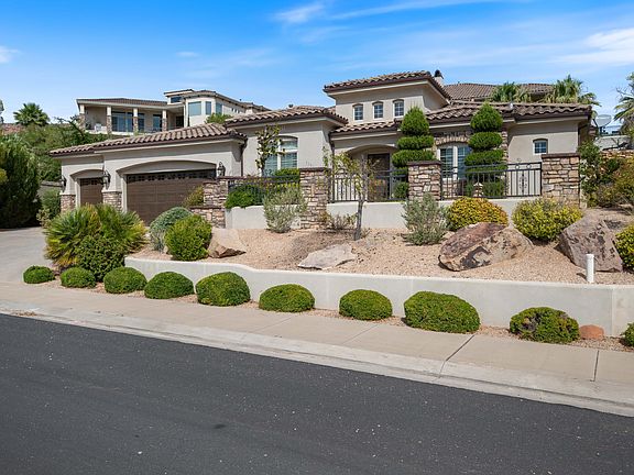 Welcome home to this custom house located in the desirable community of Northbridge at Green Springs. The home features an inviting layout with spacious rooms, coffered ceilings, an open dining and kitchen area, and easy access to outdoor living spaces. The entry and front courtyard offer beautiful views of the Desert Reserve and Pine Valley Mountains. The primary suite is privately situated with access to the outdoor living space, and the primary bathroom includes a soaking tub and a walk-in stone surround shower. There is a flex room that can serve as an office or guest suite, along with two additional guest suites with en suite bathrooms. The beautifully manicured backyard with mature trees provides a wonderful space for quiet mornings and for evening entertaining.
