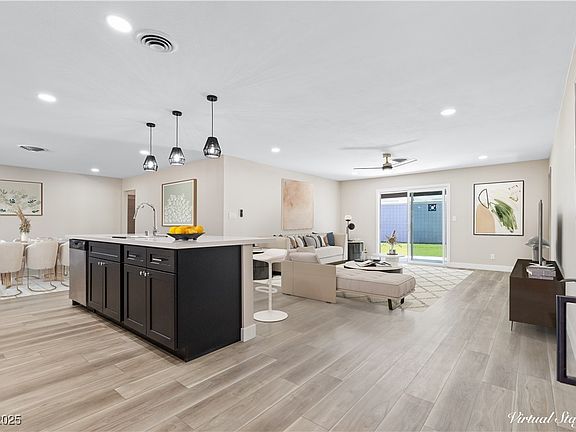 ** Now accepting FHA!***Welcome to this beautifully remodeled, fully gated single-story, 4-bedroom home with new roof with warranty, new concrete driveway, no HOA, an enclosed front porch, spacious backyard, and covered patio, all situated on a desirable corner lot. Just minutes from the Las Vegas Country Club and the excitement of the Las Vegas Strip! Inside, you’ll find an open floor plan filled with natural light, recessed lighting, modern fixtures, plush carpet, and laminate wood flooring throughout. The custom kitchen features a garden view, tiled backsplash, sleek cabinetry, custom countertops, stainless steel appliances, and an island with seating. The spa-inspired bathrooms showcase modern tiled showers with built-in niches, rainfall shower heads, dual vanities, framed mirrors, custom lighting, and beautiful tiled flooring. This home offers the perfect blend of privacy, style, and location!